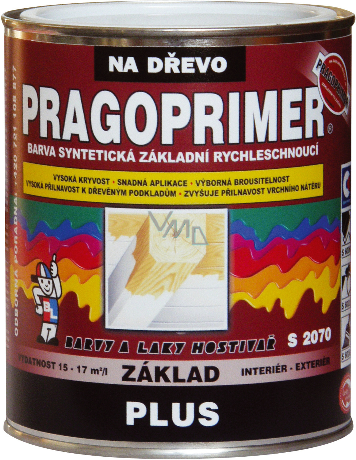 Pragoprimer Plus S 2070 podkładowa farba do drewna, 0100 biała, 600 ml