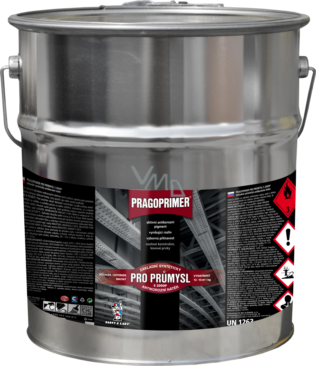 1. 1x farba PRAGOPRIMER DLA PRZEMYŚLU S2000P, czas schnięcia powłoki 24 godziny. Optymalna grubość jednej warstwy to 25 -30 µm. Czas schnięcia na metalowych przedmiotach można przyspieszyć za pomocą suszenia w temperaturze 80 °C