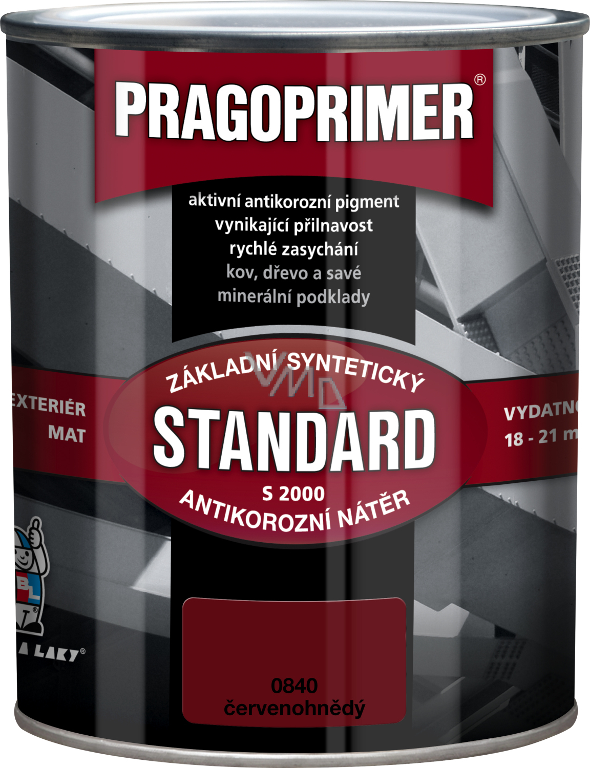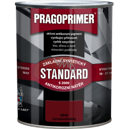 Pragoprimer Standard S2000 to uniwersalny podkład do metalu i nasiąkliwych podłoży do wnętrz i na zewnątrz, zwłaszcza pod syntetyczne i schnące na powietrzu farby, do malowania np. konstrukcji blaszanych, maszyn, mebli metalowych i drewnianych itp. Farba ma doskonałe właściwości antykorozyjne, bardzo szybkie schnięcie i uniwersalność aplikacji.