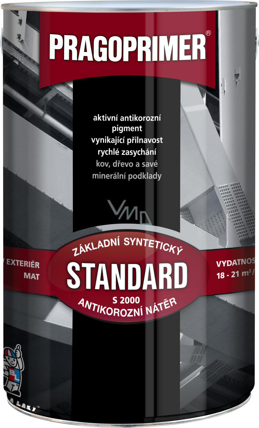 Pragoprimer Standard S2000 to uniwersalna podkładowa farba na metal i chłonne podłoża do wnętrz i na zewnątrz, szczególnie pod farby syntetyczne i schnące na powietrzu, do malowania np. konstrukcji blaszanych, maszyn, mebli metalowych i drewnianych itp. Farba ma doskonałe właściwości antykorozyjne, bardzo szybkie schnięcie i uniwersalną aplikowalność.