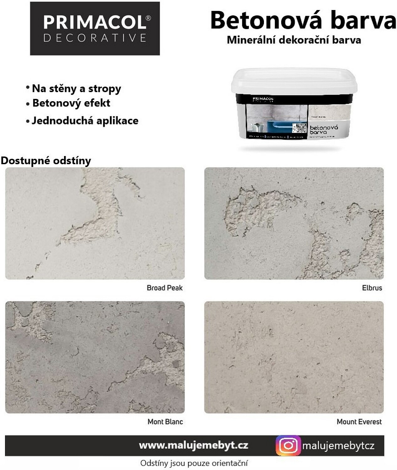 Farba dekoracyjna na bazie wiązań mineralnych. Łatwe aplikacja pozwala na uzyskanie efektu wibrowanego betonu (gładkiego, błyszczącego) oraz powierzchni z charakterystycznymi guzkami, niedoskonałościami i wklęśnięciami. Idealna do nowoczesnych wnętrz budynków publicznych i mieszkalnych, szczególnie do budynków w stylu industrialnym. Doskonale pasuje do drewna, szkła i błyszczącego metalu. Maskuje drobne nierówności powierzchni.