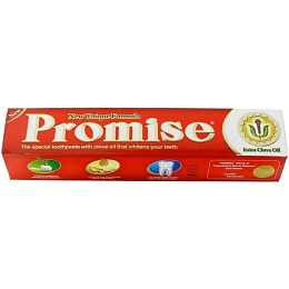 Wzmacnia dziąsła, działa leczniczo, przeciwzapalnie i przeciwbakteryjnie. Pasta do zębów Promise z olejem hřebíčku, specjalny drobnoziarnisty proszek ma działanie wybielające i usuwa płytkę nazębną. Olej hřebíčku wyróżnia się swoimi leczniczymi i przeciwzapalnymi właściwościami, jest przeznaczony do codziennej kompleksowej ochrony całej jamy ustnej.