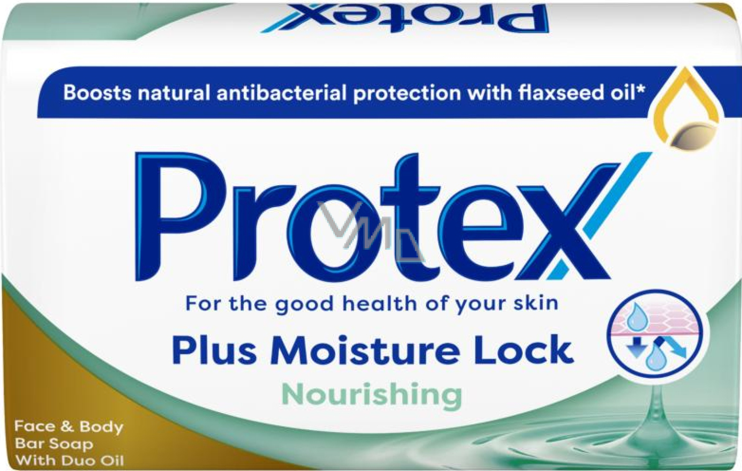 Nawilżające mydło Protex® Plus Moisture Lock do suchej skóry chroni przed 99,9 % mikrobów z olejem duo, który pomaga wzmocnić naturalną zdolność skóry do ochrony przed zarazkami chorobotwórczymi, a jednocześnie utrzymuje naturalną wilgotność skóry. Zawiera olej lniany, który pomaga zwiększyć naturalną ochronę skóry przed bakteriami.