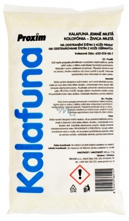 Skórę wieprza posypać odpowiednią ilością kalafuny, zalać wrzącą wodą i zdjąć szczecinę narzędziami rzeźniczymi. Przechowywać w suchym miejscu, oddzielnie od żywności. Ewentualne stwardnienie nie jest wadą, stwardniałą kalafunę można ponownie rozkruszyć i użyć. Doskonale opróżnione opakowanie oddać do zbiórki plastiku.