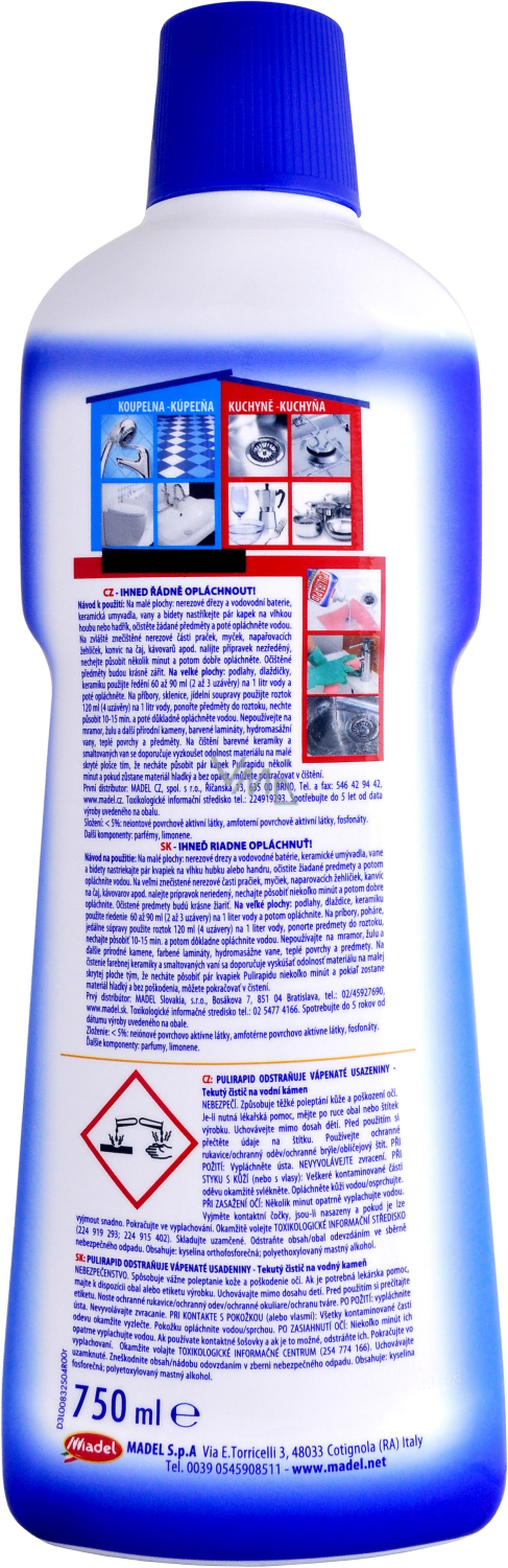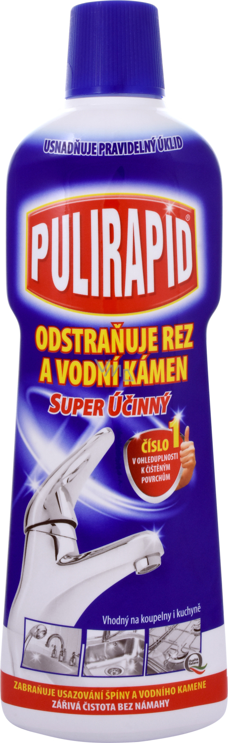 Niezrównana jakość w walce z kamieniem wodnym, rdzą i resztkami mydła. Pulirapid zawiera mieszankę skutecznych kwasów, które usuwają wszelkie zanieczyszczenia.
