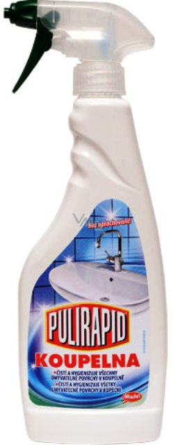 Pulirapid Koupelna ve spreji čistí a hygienizuje všechny omyvatelné povrchy v koupelně. Čisticí prostředek pro každodenní úklid koupelny. Čistí a hygienizuje vany, umyvadla, dřezy, kachličky, vodovodní baterie a povrchy z přírodního kamene. Po použití zanechává příjemnou svěží vůni. Není třeba oplachovat.