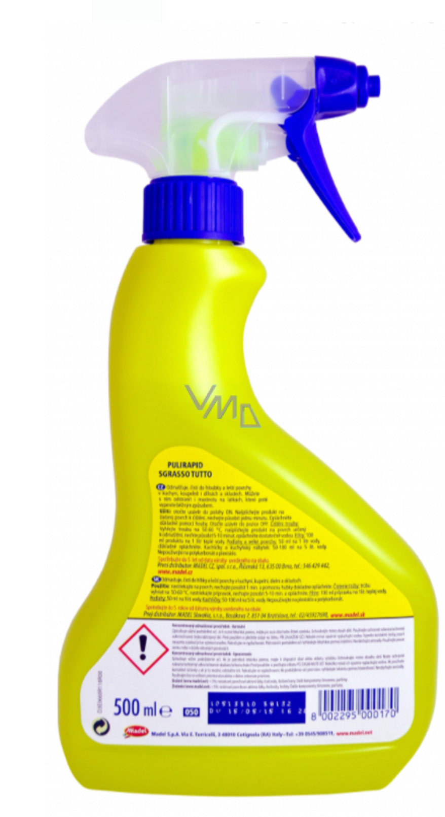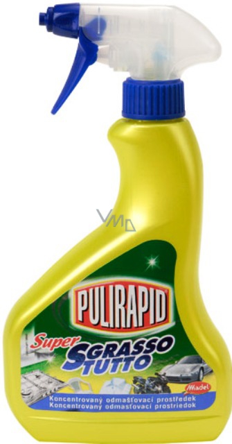 Čisticí prostředek PULIRAPID Sgrasso Tutto je určen k odmašťování, čištění a leštění povrchů v koupelnách, kuchyních i ve skladech či dílnách. Můžete použít i na zamaštěné látky, které po vyčištění vyperte obvyklým způsobem. Sprasso Tutto je určen pro ošetření různých typů povrchů, používejte na podlahy, pečící trouby, filtry apod. Po vyčištění povrchu opláchněte. PULIRAPID Sgrasso Tutto přináší řešení pro povrchy znečištěné mastnotou, vyzkoušejte jeho sílu!