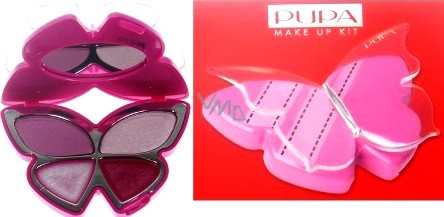Paletka dekorativní kosmetiky s paletkou barev kosmetiky, která se bude hodit ke každému hravému elementu ženy, dívky. Rozkošně rafinovaná, obsahující vysoce kvalitní produkty ke kompletnímu namalování očí a rtů. Nehmatatelná lehkost a elegantní barevní motýlci, jenž jsou symbolem ženskosti v Pupa, což představuje ve světě fantastické líčení.