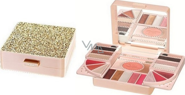 Elegantní kosmetická kazeta obohacená vodopádem třpytivých glitrů. Opravdová krášlicí skříňka pro kompletní make-up obličeje, očí a rtů. Umožňuje cítit se každý den jako princezna!