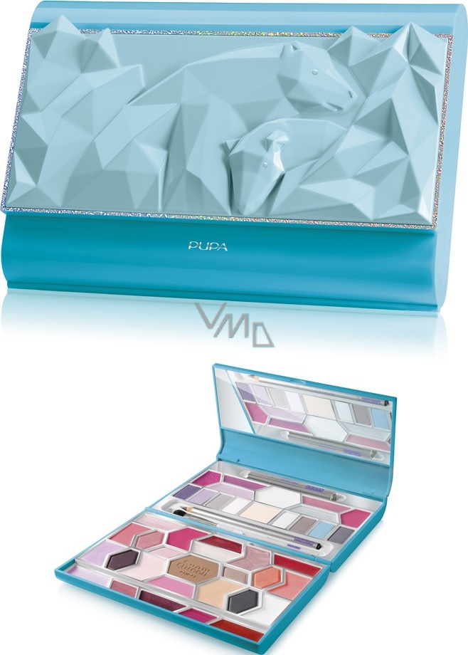 Třpytivá paleta, dekorovaná obrysem dvojice sladkých polárních medvědů. Uvnitř se nachází široká škála výrobků pro make-up obličeje, očí a rtů, kompletní a vhodná pro každou příležitost. Abyste se každý den cítila jako Snow Queen.