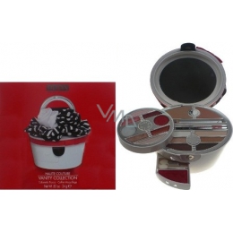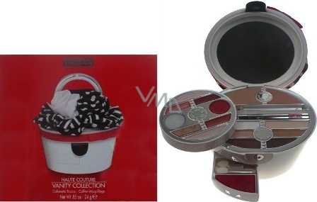 Košíček s paletkou líčidel, připomínající vášeň pro módu. Marnivá kolekce neodolatelných super moderních kazet na kompletní make-up tváře, očí a rtů.
