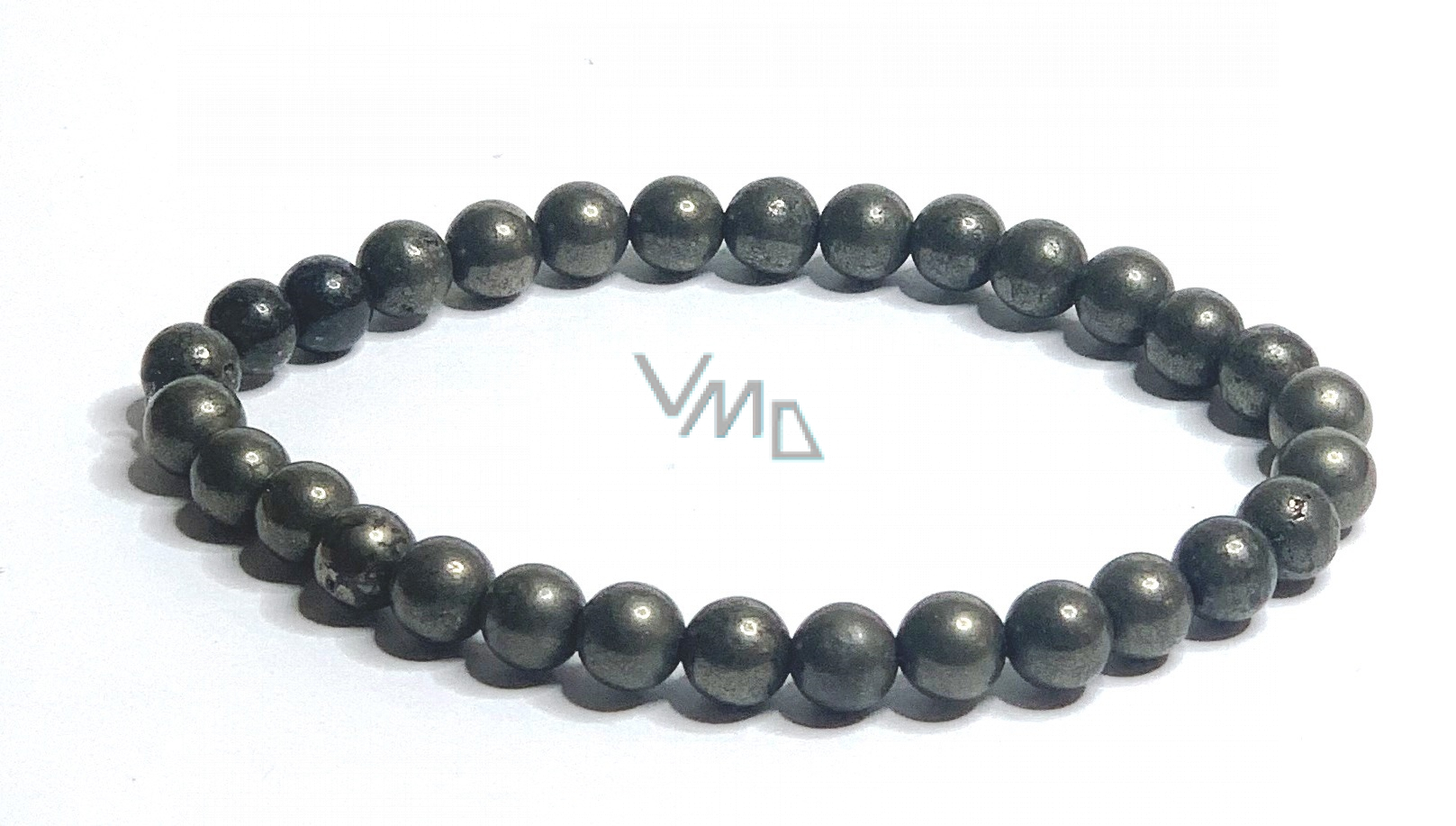 Pyrit bransoletka elastyczna naturalny kamień, kuleczka 6 mm / 16 - 17 cm, mistrz pewności siebie i obfitości
