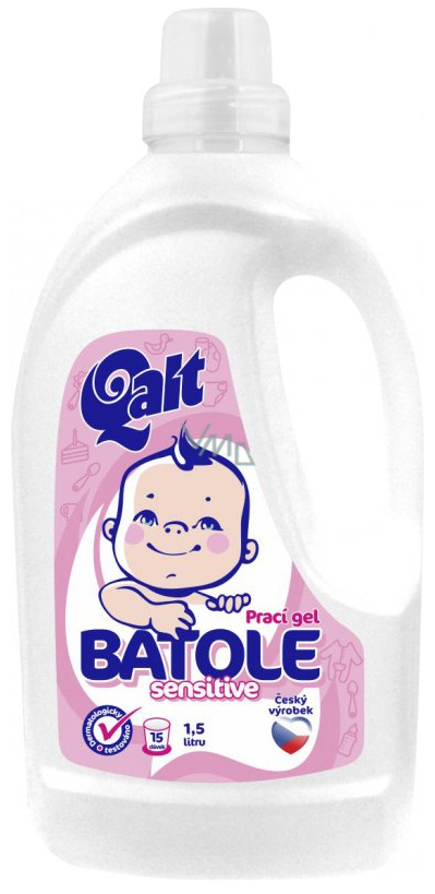 Żel do prania Qalt Batole jest przeznaczony do prania przede wszystkim dziecięcej odzieży. Zawarte Enzymy pomagają w usuwaniu zanieczyszczeń białkowych i skrobiowych, takich jak plamy po pokarmie dla niemowląt, trawie lub krwi. To opakowanie wystarcza na 15 cykli prania.