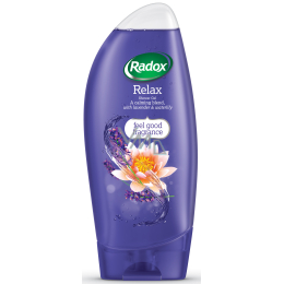 - Dopřejte si na několik minut horkou sprchu plnou páry a použijte Radox Relax s obsahem výtažku z levandule, který vás uvolní a osvěží svou silnou, ale přesto svěží vůní.