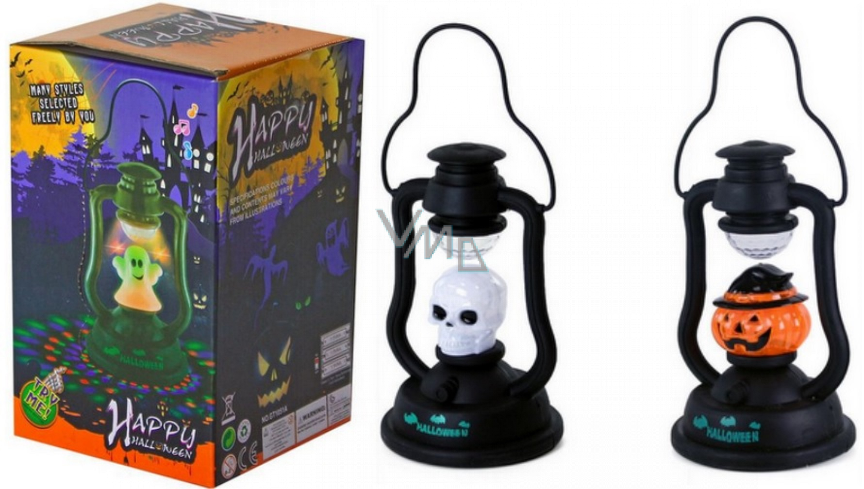Halloweenské svítidlo na tu pravou Halloween párty! Plastová lampa s lebkou nebo dýní vyžaduje 3 ks baterií typu AA, které nejsou součástí. Stačí jen zapnout a ozve se strašidelný zvuk spolu se světelným efektem.