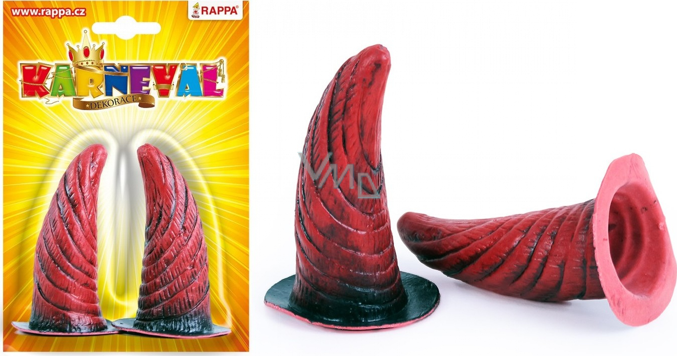 Hrozivé gumové rohy, které jsou skvělým doplňkem ke kostýmu čerta. Balení obsahuje oboustrannou samolepku.