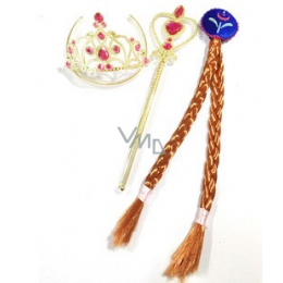 Staň se na okamžik princeznou Aničkou! Sada obsahuje rezavý příčesek se zapleteným copem, korunku a hůlku ve zlaté barvě s růžovými kamínky. Tyto překrásné doplňky ti nesmí chybět!
