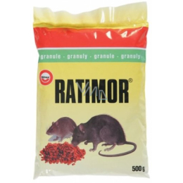Granule Ratimor jsou rodenticidem, který je mimořádně lákavý pro domácí myši a černé a šedé potkany. Kvůli aktivní látce bromadiolon, která má mimořádně široké spektrum použití, je velmi oblíbeným výběrem odborníků na likvidaci škůdců.