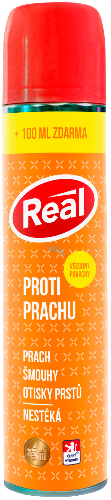 Real Proti prachu speciální prostředek na ošetřování a čištění dřevěných, skleněných a plastových povrchů sprej 400 ml