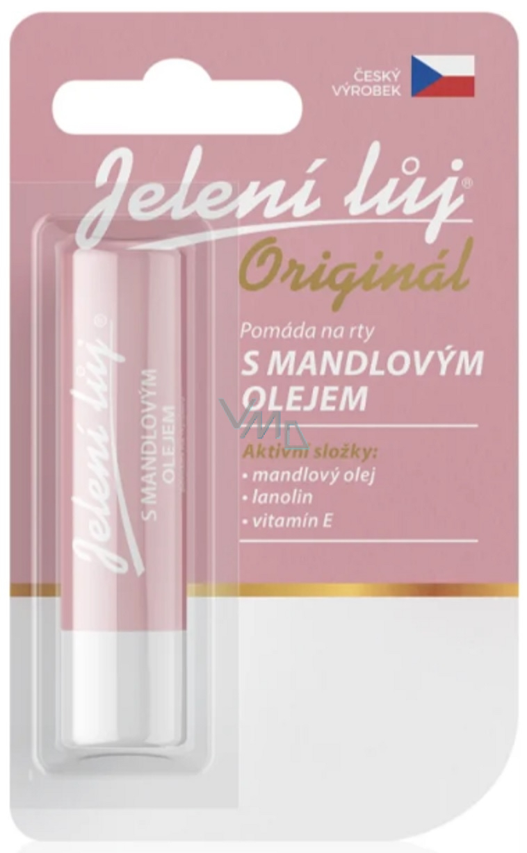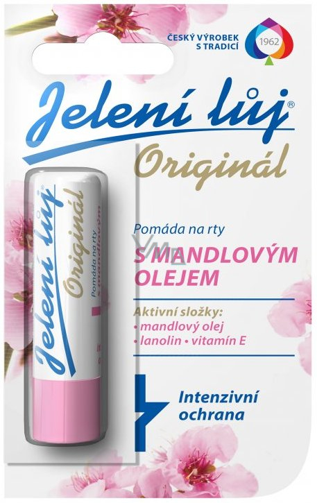 Pomada przeznaczona do codziennej intensywnej pielęgnacji wrażliwej skóry ust i ich ochrony przed niekorzystnymi warunkami atmosferycznymi. Zawiera naturalny olejek migdałowy, witaminę E i bardzo przyjemny aromat. Jelenia Łaźnia Oryginalny to tradycyjny czeski produkt kosmetyczny Regina. Jest wytwarzany według unikalnej receptury głównie z naturalnych surowców. Jelenia Łaźnia chroni usta przed wysuszeniem i pękaniem. Regeneruje skórę ust, tworzy na niej odporność na mróz, ekstremalne upały i inne niekorzystne warunki atmosferyczne.