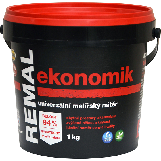 REMAL Ekonomik to farba malarska z optycznie poprawioną bielą, kryciem i wysoką przepuszczalnością pary. Farba malarska REMAL Ekonomik jest stosowana do malowania tynków, betonu, płyt gipsowo-kartonowych, płyt cetris, wiórowych oraz tynków renowacyjnych wewnątrz budynków. Farba malarska jest wyprodukowana z naturalnych kred, co pozwala na nałożenie kilku warstw. Ze względu na swoje skład, pozwala na szybsze schnięcie. Farba na ścianę REMAL Ekonomik ma biel 94 %.
