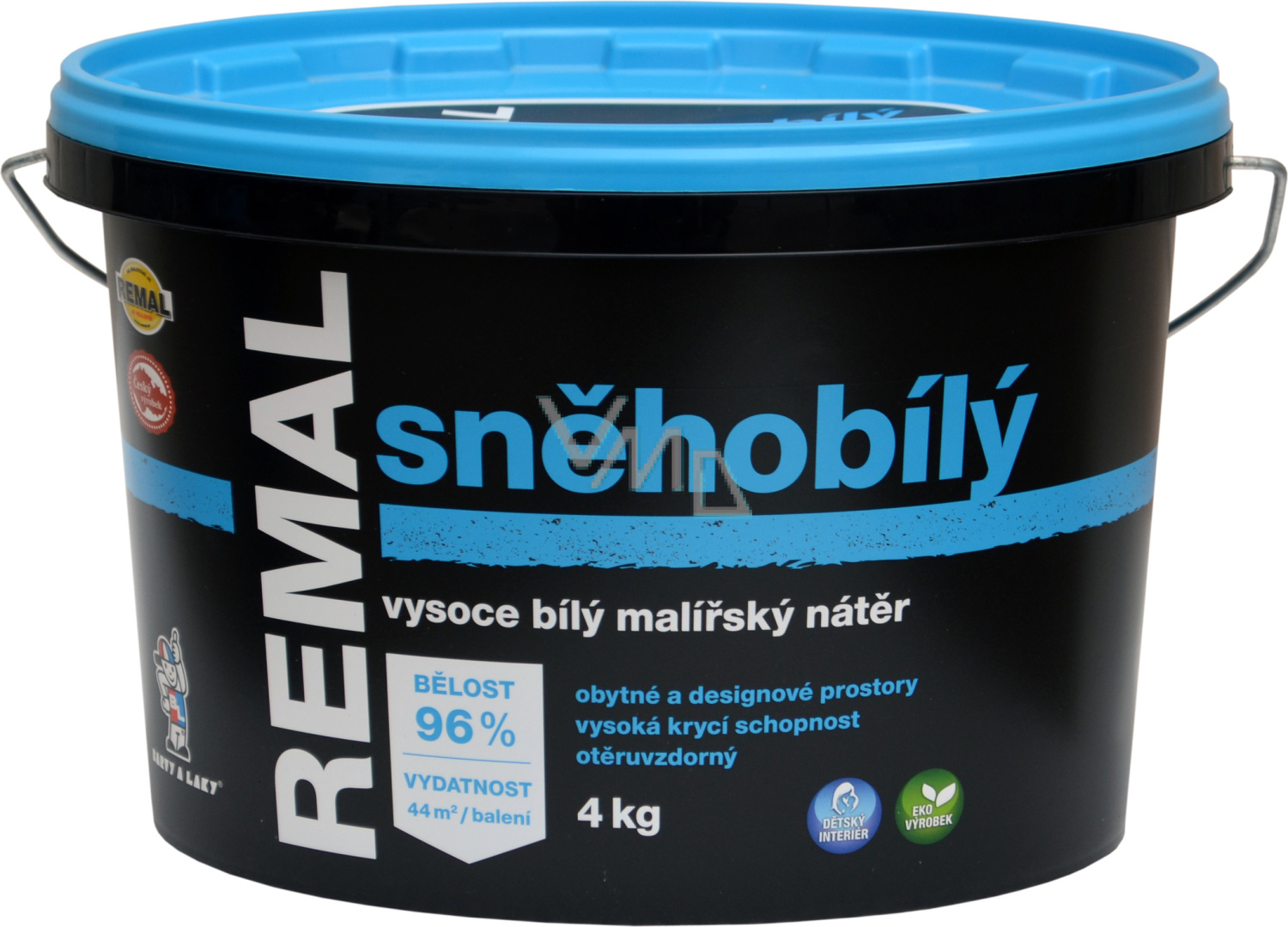 Farba malarska REMAL śnieżnobiała jest zalecana ze względu na swoją ekstremalną biel dla powłok w przestrzeniach mieszkalnych i projektowych. Farba na ścianę REMAL śnieżnobiała z bielą 96 % jest stosowana do malowania ścian i sufitów w wnętrzach na tynki, płyty gipsowo-kartonowe i inne podłoża. Wnętrzowa biała farba malarska REMAL jest dobrze i łatwa do obróbki, zdrowotnie nieszkodliwa i ekologicznie przyjazna. REMAL Śnieżnobiała jest farbą malarską wodnorozcieńczalną o wysokiej bieli.