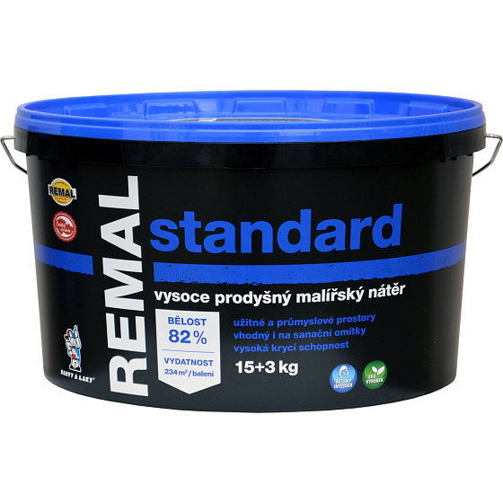 REMAL Standard to klasyczna naturalna farba malarska na ścianę na bazie kaolinu, rozcieńczana wodą. Doskonale kryje, jest przepuszczalna, odporna na ścieranie i ma standardową białość 82%. Farba na ścianę REMAL jest stosowana do malowania tynków, betonu, płyt gipsowo-kartonowych, płyt Cetris, wiórowych oraz tynków sanacyjnych w wnętrzach. Farba wykazuje odporność na ścieranie na mokro – mierzone zgodnie z normą ČSN EN ISO 11998 – klasa 5. (klasyfikacja według EN 13300).