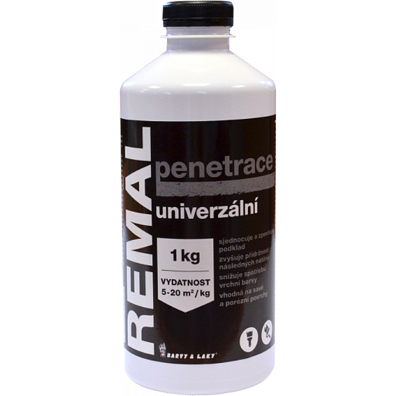 REMAL uniwersalny preparat penetracyjny mieszanka wodnych dyspersji makromolekularnych substancji, specjalnych dodatków i substancji konserwujących. Jest polecany jako podstawowy preparat penetracyjny na podkłady chłonne (tynki, drewno itd.) w celu zmniejszenia chłonności oraz jednoczesnego poprawienia przyczepności górnej warstwy farby lateksowej lub malarskiej.