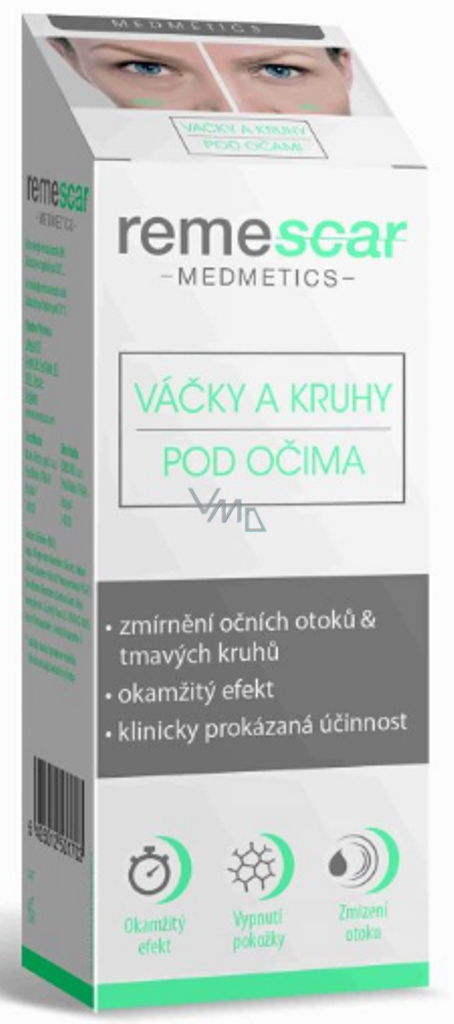 Poznámka: Make-up na olejové bázi může snížit účinnost přípravku Remescar váčky a kruhy pod očima.