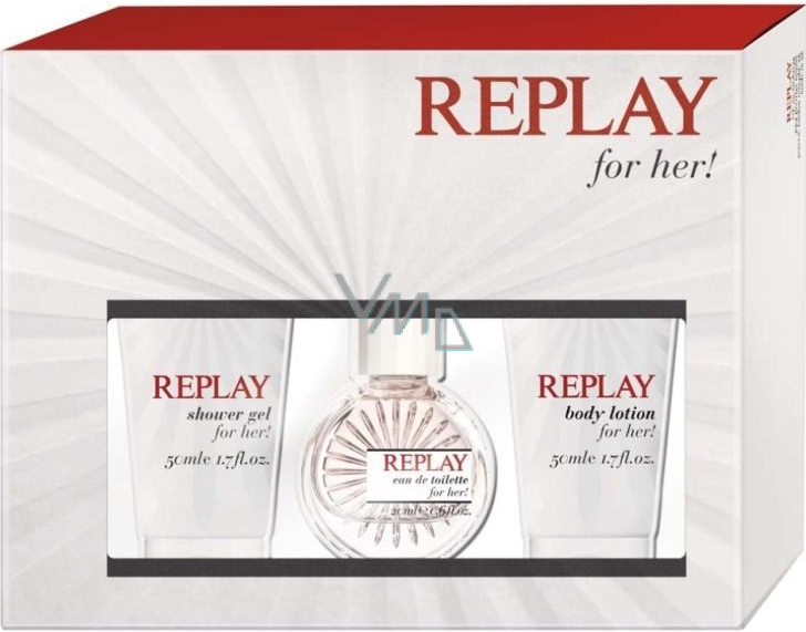 Parfém Replay for Her je vzrušující a smyslná vůně, která ve vás zanechá nezapomenutelný pocit svobody. Vůně vás zpočátku zahalí do svěžesti plné citrusových tónů snoubící se s prvky lahodného jablka. Poté se otevírá svůdné a živé srdce parfému dřevitou vůní s akordy něžné švestky. Dokonalý pocit opojné slasti zakončí vůně vzácného dřeva s netradičními motivy fazole Tonky, která navodí pocit uvolnění a vášně.