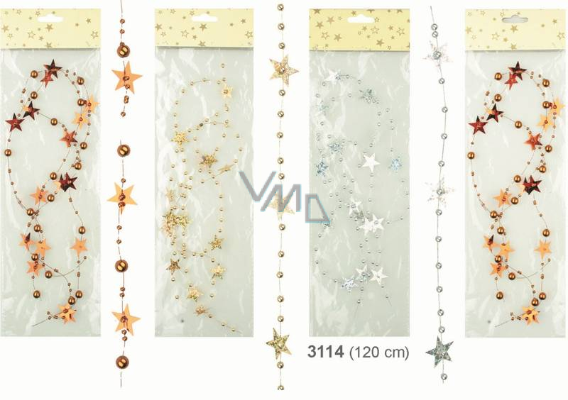 Řetízek z hvězdičkami a perličkami 120 cm, cena za 1 sáček