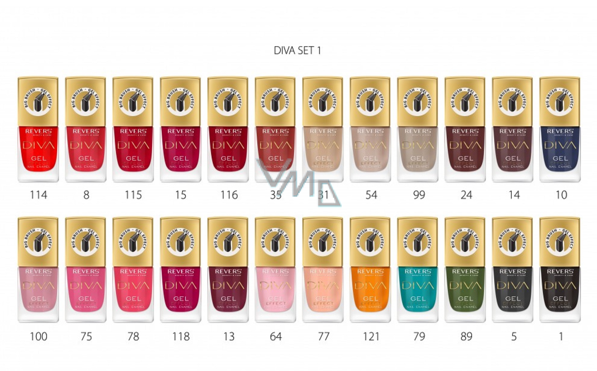 Diva Gel Effect lak na nehty s gelovým efektem, bez použití UV lampy. Jediný tah širokého kartáčku umožňuje dosáhnout efektu dokonale hladkého nehtu s gelovou povrchovou úpravou. Díky jedinečnému složení zůstává barva intenzivní a extrémně lesklá po mnoho dní bez nutnosti oprav. Lak rovnoměrně pokrývá nehet a současně jej vytvrzuje. Široká škála barev umožňuje volně si vybrat své oblíbené odstíny. Lak na nehty Diva Gel Effect lze snadno a rychle odstranit jako běžný lak na nehty.