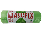 Alufix Sáčky do odpadkového koše zatahovací zelené, 15 µ, 60 litrů, 64 x 70 cm, 20 kusů HDPE