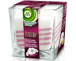 Air Wick Touch Of Luxury Jemný satén a Měsíční lilie vonná svíčka ve skle 180 g
