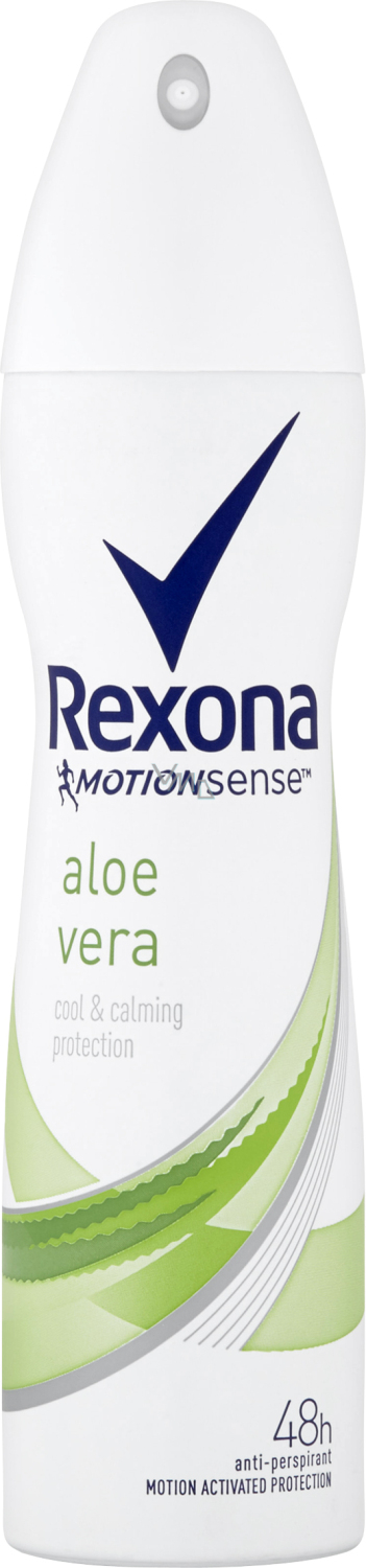 Antyperspirant z aloesu vera i technologii Motionsense, im więcej się poruszasz, tym lepiej działa. Lekki, świeży zapach aloesu wywołujący uczucie spokoju i ochłodzenia. Skuteczny antyperspirant dbający o skórę. Świeży, uspokajający zapach. Z antyperspirantem Rexona Aloe Vera nie musisz się już martwić o krostki, podrażnienia i inne nieprzyjemne objawy na delikatnej skórze pod pachami.