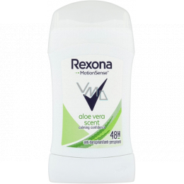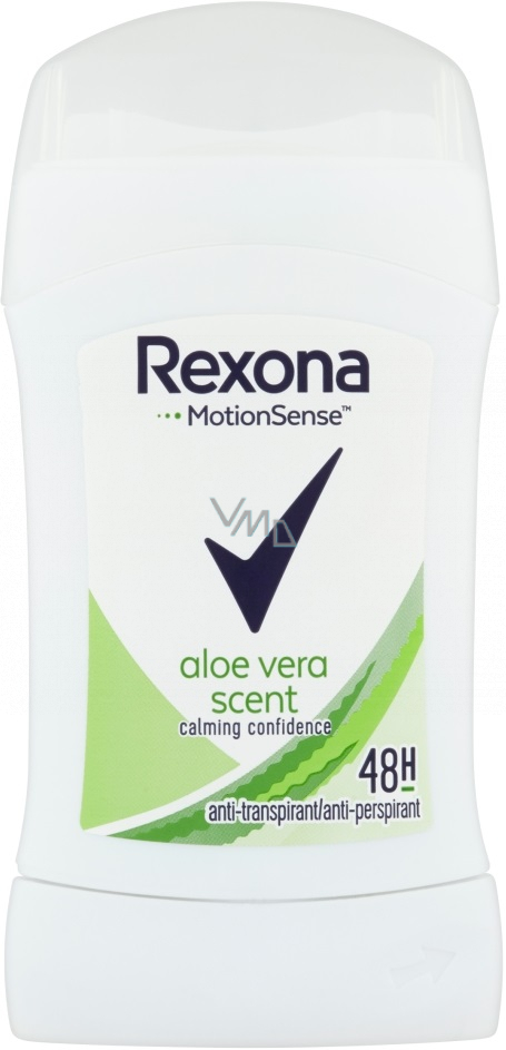 Rexona tuhý antiperspirant aloe vera vytváří na pokožce podpaží příjemný chladivý efekt. Patentovaná technologie Motionsense™ při zvýšené fyzické aktivitě navyšuje funkčnost přípravku a uchovává pocit svěžesti po celý den. Voňavé mikrokapsle, na nichž je technologie založená, během pohybu praskají a tím se uvolňuje větší množství vůně. Rexona tuhý antiperspirant aloe vera vám poskytne nejen spolehlivou ochranu během celého dne, ale také díky obsahu aloe vera lehce a svěže voní.