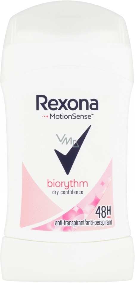 Exkluzivní formulace Active Reserve obsahuje mikrokapsle aktivované tělesnou teplotou. Jeho jemné složení je vhodné pro citlivou pokožku a nabízí lehkou, příjemnou vůni. Rexona Women Biorythm antiperspirant s technologií MotionsenseTM poskytuje dlouhotrvající ochranu před potem a zápachem, kdykoliv jsi v pohybu.