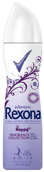 Antyperspirant spray Rexona z kolekcji fascynujących zapachów.