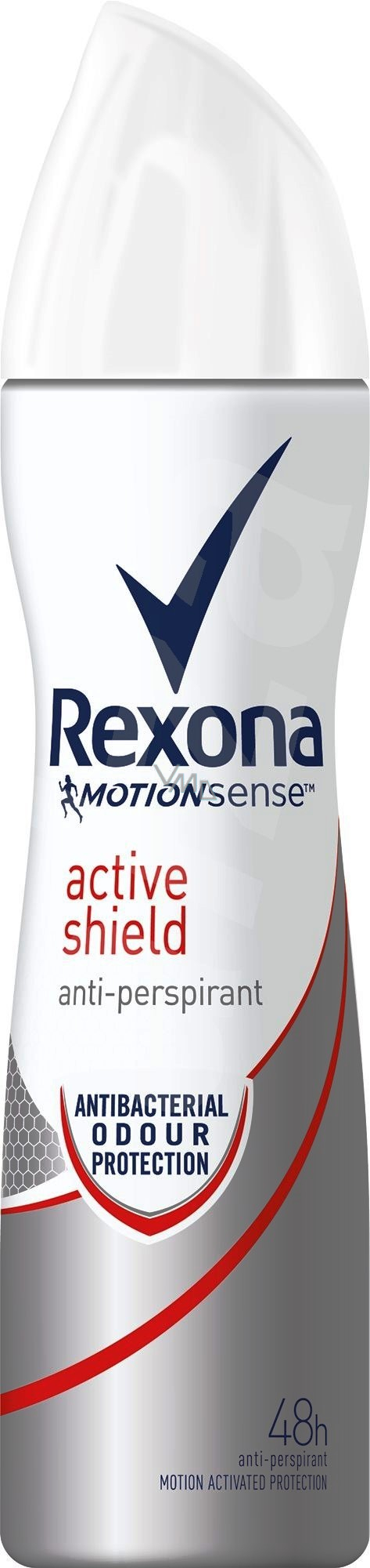Mimořádně účinný antiperspirant deodorant ve spreji Rexona Active Shield 150 ml. Perfektně chrání proti nadměrnému pocení i zápachu až na 48 hodin. Navíc s ochranou proti zápachu způsobeným bakteriemi. Deodorant poskytuje svěží vůni a je velice šetrný k pokožce. Díky patentované technologii Motionsense reaguje přímo na pohyb, takže funguje tím intenzivnější, čím více jste v pohybu.
