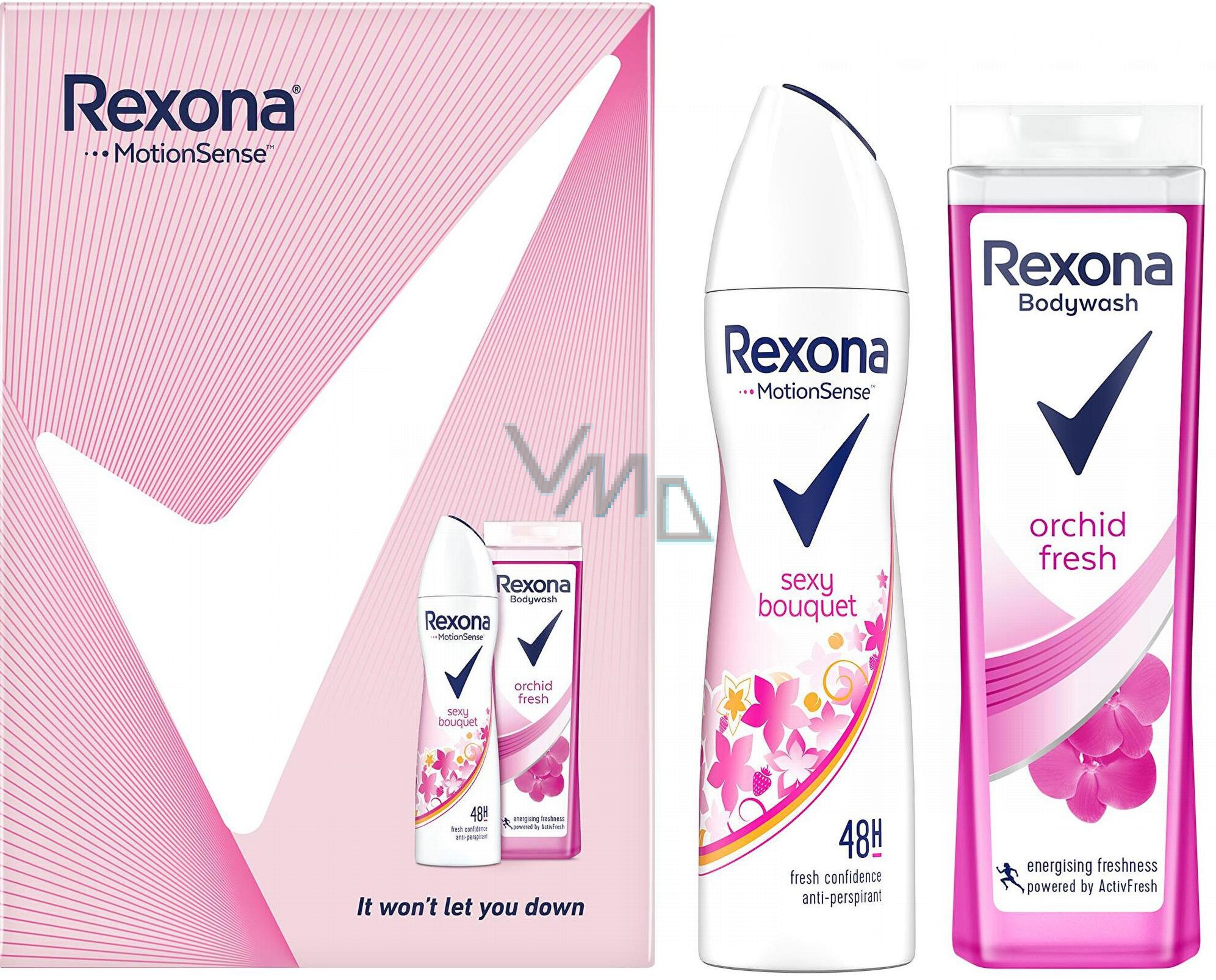 Rexona Orchid Fresh sprchový gel 250 ml + Sexy Bouquet antiperspirant deodorant sprej 150 ml, kosmetická sada