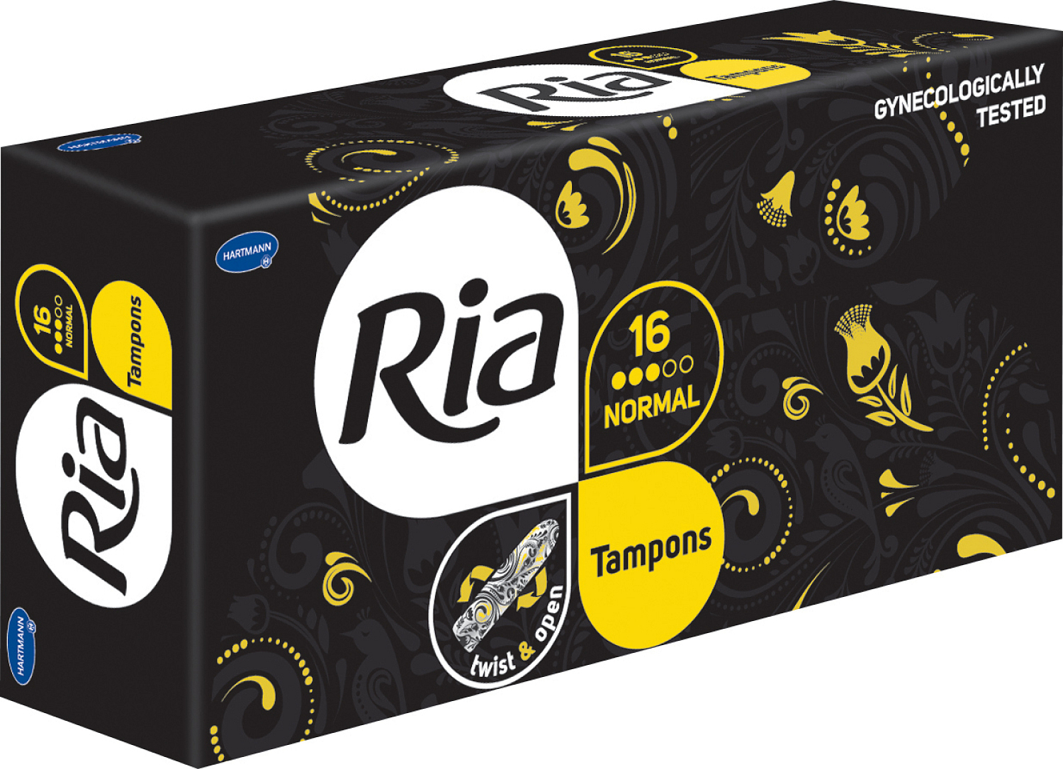 Tampony Ria Normal zapewniają niezawodną ochronę i najwyższy komfort noszenia podczas normalnej menstruacji. 8 rowków, jedwabisto gładka powierzchnia i zaokrąglony kształt tamponu zapewniają wyjątkowo wygodne wprowadzanie. Proste i szybkie otwieranie TWIST & OPEN. Ginekologicznie testowane.