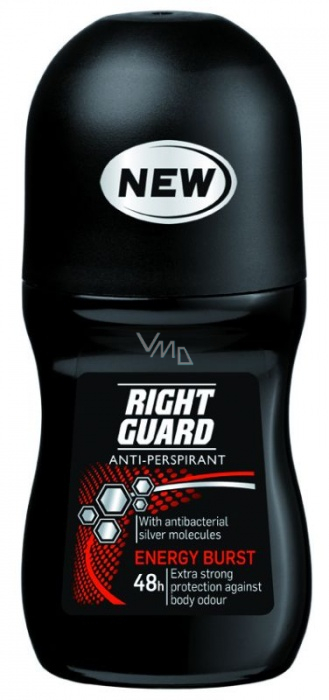 Většina mužů důvěřuje produktům speciálně vyvinutým pro jejich potřeby. Produkty značky RIGHT GUARD zaručují účinnost, slušný designe a příjemnou vůni. Složení s antibakteriálními molekulami stříbra bojuje přímo se zdrojem tělesného pachu a poskytuje vysoce účinnou ochranu proti pocení v podpaždí. Premiérová značka RIGHT GUARD nabízí řadu produktů pro 48hodinovou ochranu proti tělesnému pachu. Využijte též i sprchový gel, roll- on či stick značky RIGHT GUARD.