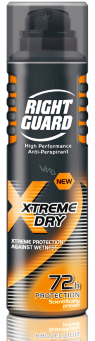 Nové výrobky Right Guard Xtreme Dry byly vědecky testovány v extrémních podmínkách. Představují první antiperspiranty s vysoce účinným složením s přídavkem antibakteriálních molekul stříbra, jež zajišťují jedinečnou ochranu proti nadměrnému pocení i v těch nejextrémnějších situacích. Ať už zvedáte činky v posilovně, řítíte se po černé sjezdovce na prkně nebo máte prezentaci v zasedačce, Right Guard Xtreme Dry vám nabízí klid po dlouhých 72 hodin. Vůbec nemusíte přemýšlet, jestli jste nezapomněli použít svůj deodorant.