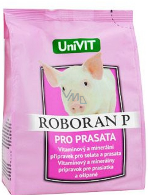 ROBORAN P jest dodatkiem do paszy dla prosiąt i świń, których tuczenie odbywa się na podstawie śrutów zbożowych lub mniej wartościowych pasz, które nie zawierają fizjologicznie potrzebnych ilości witamin, minerałów i składników odżywczych.