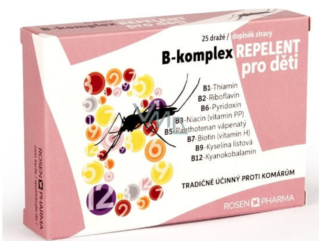 První repelent v tabletové formě pro děti. Komplex vitamínů skupiny B s navýšenou dávku Thiaminu. Metabolity Thiaminu odpuzují a matou komáry. Pokrývá denní spotřebu vitamínů skupiny B a navíc chrání proti komárům.