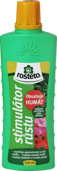 Stimulátor růstu Rosteto urychluje zakořeňování a růst rostlin, zvyšuje násadu květů a zvyšuje množství a kvalitu plodů. Růstový stimulátor lze aplikovat na rostliny buď postřikem na list nebo zálivkou do půdy. Přípravek má vzhledem k obsahu huminových látek komplexní vliv na rostliny i půdu a tím je značně urychlován růst rostlin, zvyšuje se výnos a kvalita plodů. Rostlinný stimulátor lze aplikovat ke všem druhům pokojových rostlin, okrasných zahradních rostlin a všem druhům zeleniny.