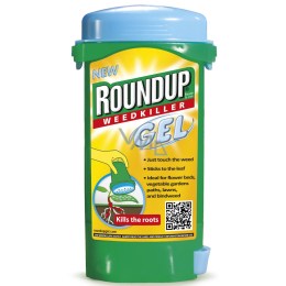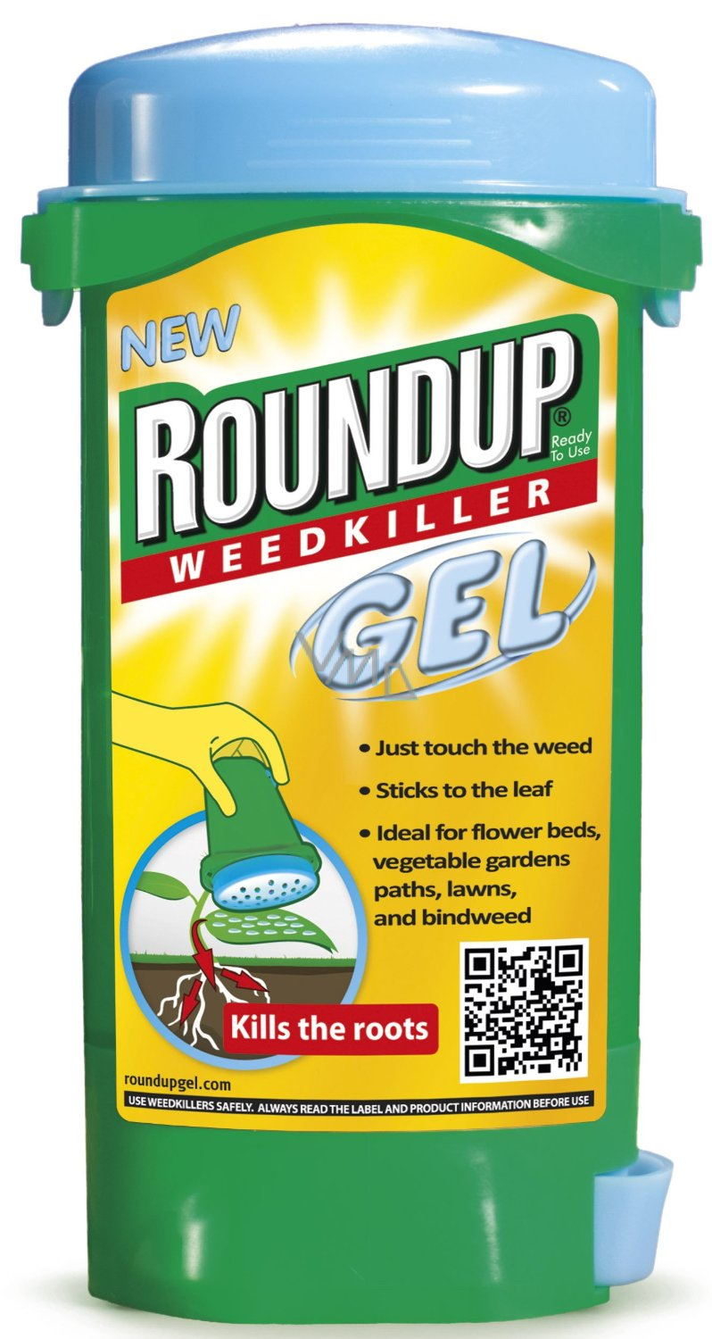 Roundup gel přípravek na ochranu rostlin malospotřebitelské balení. Listový neselektivní herbicid ve formě gelu k přímé aplikaci, k hubení jednoletých a vytrvalých plevelů s hlubokým kořenovým systémem včetně trav, kopřivy dvoudomé a bršlice kozí nohy.