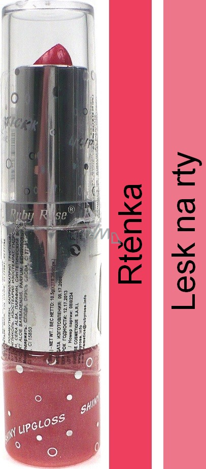 Ruby Rose Lipstick & Shiny Lipgloss rtěnka 3,5 g + lesk na rty 7 ml