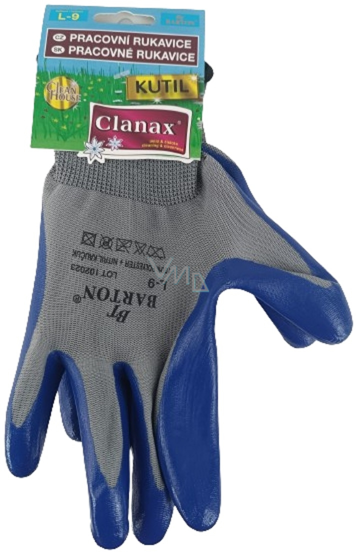 Rękawice robocze Clanax są wykonane z poliestru, pokryte nitrylowym kauczukiem na dłoni i palcach z elastycznym mankietem. Rękawice przeznaczone są wyłącznie do użytku prywatnego w gospodarstwie domowym - prac ogrodniczych i drobnych prac wokół domu.