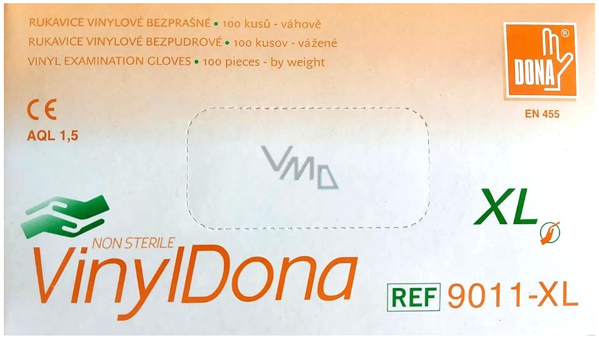 Dona Vinyl Rukavice jednorázové vinylové bezprašné, velikost XL, 100 kusů